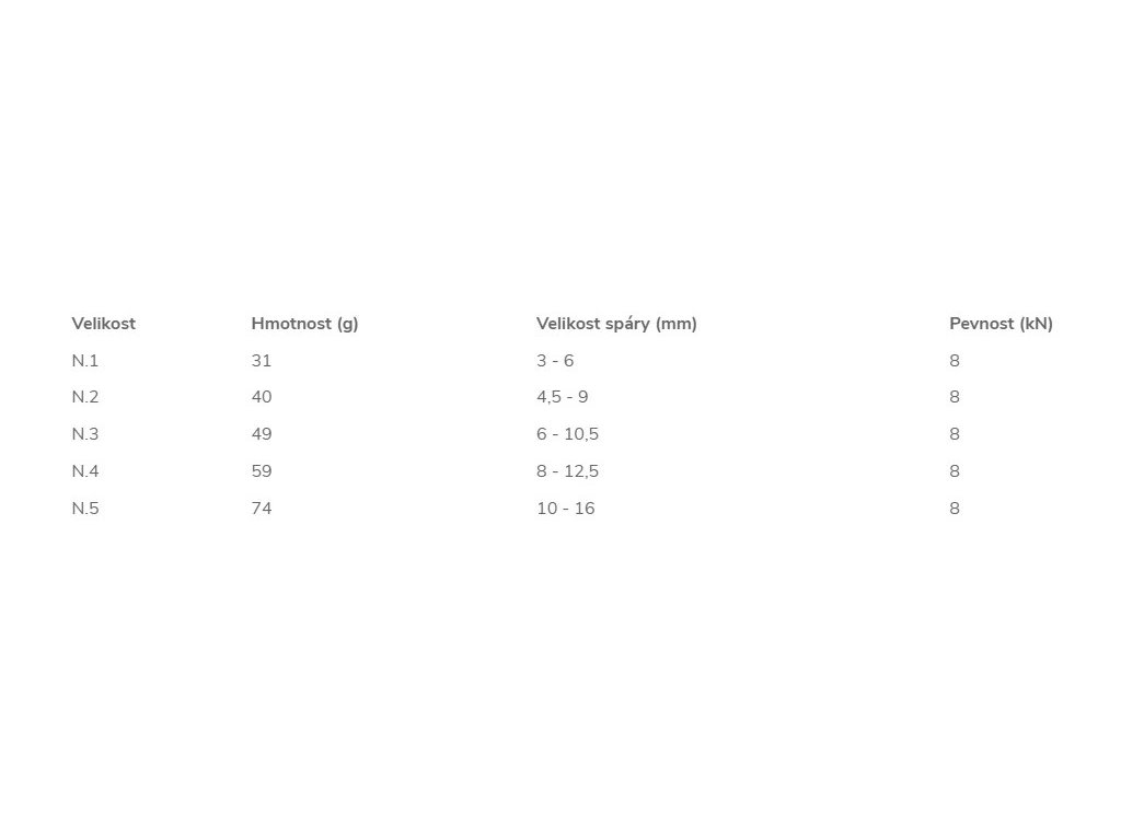 Vklíněnce jsou barevně odlišené pro jednodušší výběr správné velikosti na sedáku. Výborně drží v úzkých vlásenkových spárách. Střední velikost pro spárky široké 4,5-9 mm!