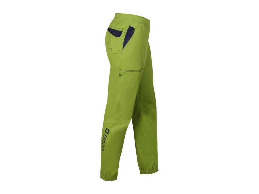 Pohodlné kalhoty Jaws od českého výrobce Ocún jsou kalhoty funkčního střihu pro neomezený pohyb při lezení. Mají pružný pas se stahovací šňůrkou pro optimální přizpůsobení velikosti, střih kolen tvarovaný švy, dvě přední a jednu zadní kapsu, stahovací kalhoty a dvě boční poutka na kartáčky (aby měli kartáček na čištění chytů po ruce praváci i leváci).