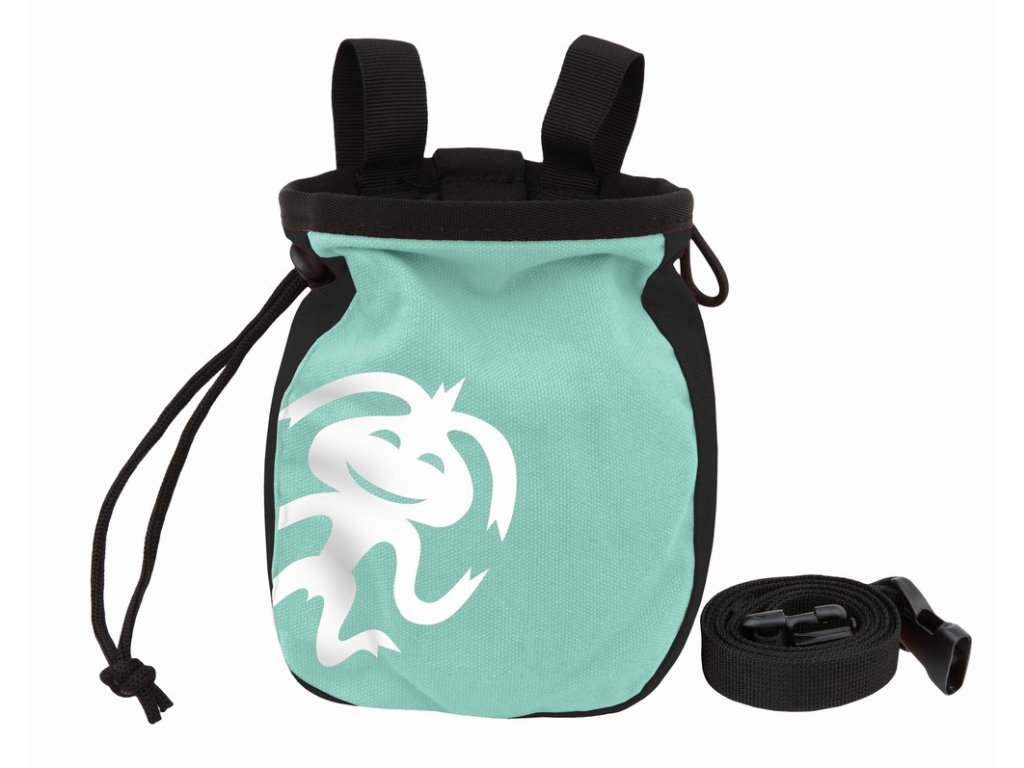 Praktický pytlík na magnesium klasického tvaru s výrazným logem Rafiki a stahováním na šňůrku. Přirozenou součástí je očko na kartáček a nezbytný pásek.
